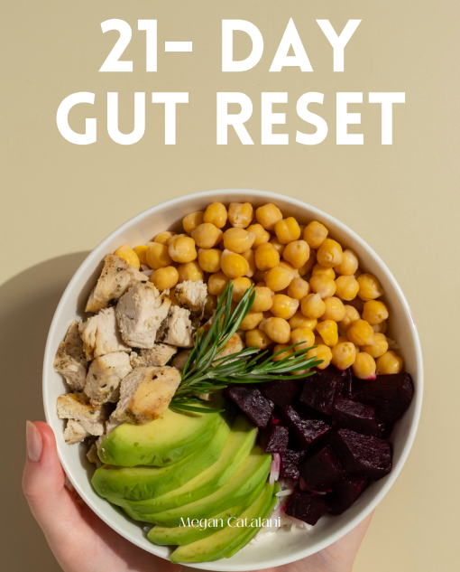 In this 21-day reset, you will take a deep dive into your gut health with food, supplements, and relaxation techniques.